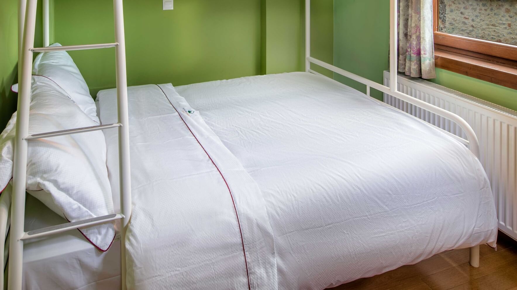 Μια κρεβατοκάμαρα με κρεβάτι κουκέτα, διπλό κάτω, μονό επάνω